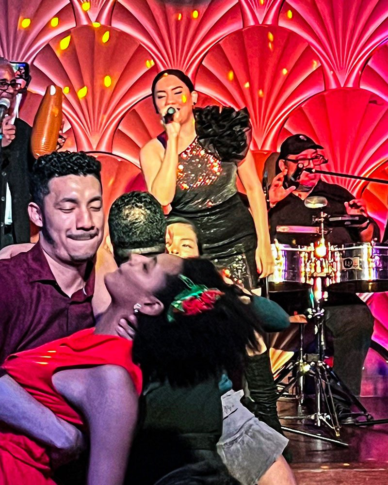Al público: no tienen idea de cómo llenaron mi corazón al verlos bailar un tema nuevo de esta servidora; ese momento no tiene precio. Como bailadora —leve, no modo pro jajaja—, regularmente si no conocemos un tema no nos aventuramos a bailarlo, porque obviamente no sabemos cómo va. Pero ver a los bailadores bailando nuestra canción, e incluso a una señora que no conocía al fondo cantándola siendo la primera vez que la escuchan, es un momento mágico.
